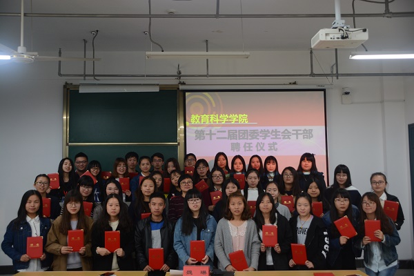 会议由新一届教科院学生会主席徐航同学担任主持,由魏琳老师宣读聘任决定,并向全体团员干部颁发聘书、合影留念。