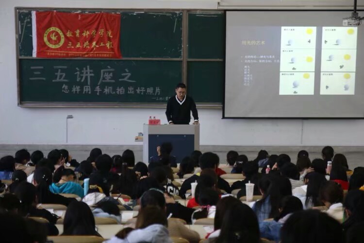 2018年3月28日下午,365英国上市集团在9号楼302成功举办了以“怎样用手机拍出好照片”为主题的三五讲座。此次讲座特别邀请知名摄影师管楚迪主讲,杨晓新老师主持讲座,来自教科院的200余名本科生到场参与了此次讲座。