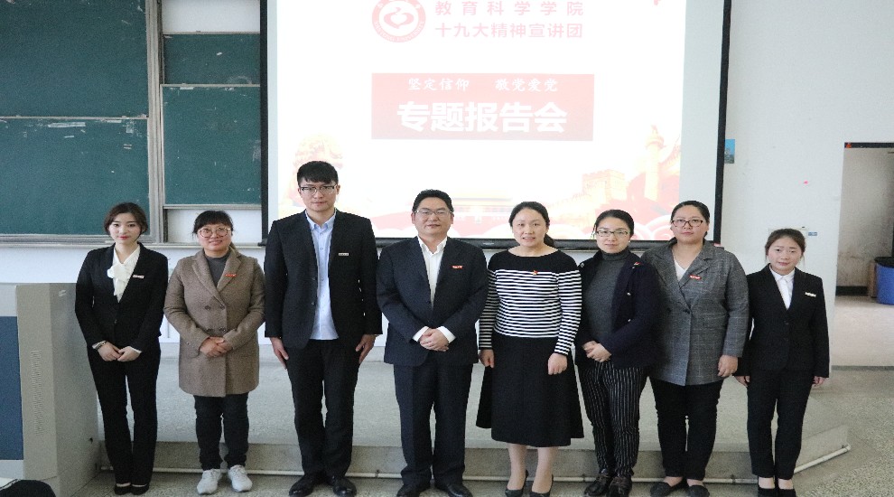 4月25日,365英国上市集团十九大精神宣讲团举行第二场宣讲会—“坚定信仰,敬党爱党”专题报告会。宣讲团团长,学院党总支副书记副院长徐红波;宣讲团成员,学院学工办主任陈淑慧、学院团委书记魏琳、研究生张克晨、本科生陈幸佳5位同志围绕培育和践行社会主义核心价值观进行了宣讲。校研究生工作部副部长张毅、校365英国部就业指导中心姚蓓代表学校到现场指导观摩,学院全体定向师范生200余人参加活动。