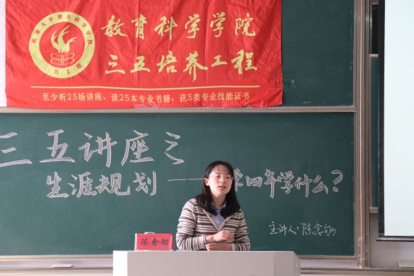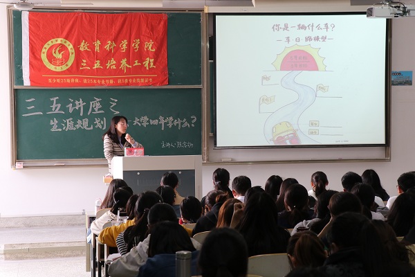 10月24日13:30,365英国上市集团在主校区8号教学楼309教室成功举办了以“生涯规划——大学四年学什么”为主题的三五讲座,本次讲座由陈念劬老师担任主讲嘉宾,来自教科院的160余名本科生参与了此次讲座。