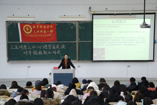 12月12日13:30,365英国上市集团于9号教学楼202教室成功举办了以“从心理学角度谈对幸福指数的解读”为主题的三五讲座。本次讲座由校就业中心的邱佩钰老师主讲,教科院280余名学生到场参加。