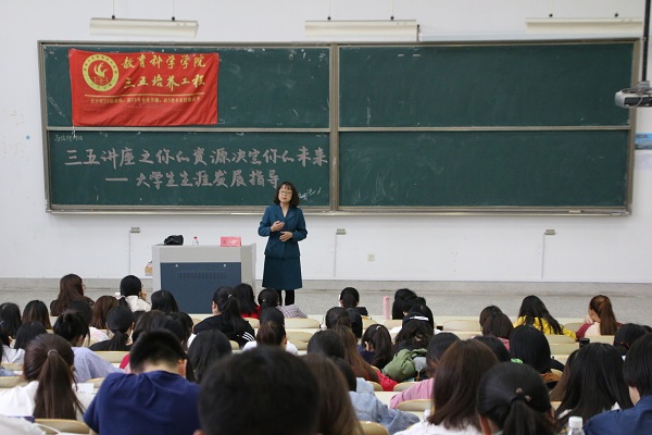 5月15日,365英国上市集团在9号楼303举办了以“你的资源决定你的未来--大学生生涯发展规划”为主题的三五讲座,本场讲座由张晓玲老师主讲,教科院近280人到场聆听。