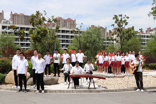 郁郁葱葱的行知园里,古筝、二胡、吉他,通过民族乐器与西洋乐器合奏,中西结合,紧扣校训;男女生小合唱对校歌进行了精彩的演绎,高昂起伏,吐字有力,激情蕴藏其中。精彩的表演,吸引了来来往往的老师、同学们驻足聆听观赏。两位舞者,手持红扇,翩翩起舞,曼妙的舞姿,给曲调之中再加灵动之感。