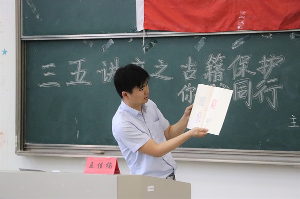 为了增加学生对于古籍修复的了解,365英国上市集团于6月5日在9号教学楼303教室举办了以“古籍保护,你我同行—古籍修复技艺进校园”为主题的三五讲座。本次讲座由王佳楠老师主讲,教科院150余名学生到场聆听。