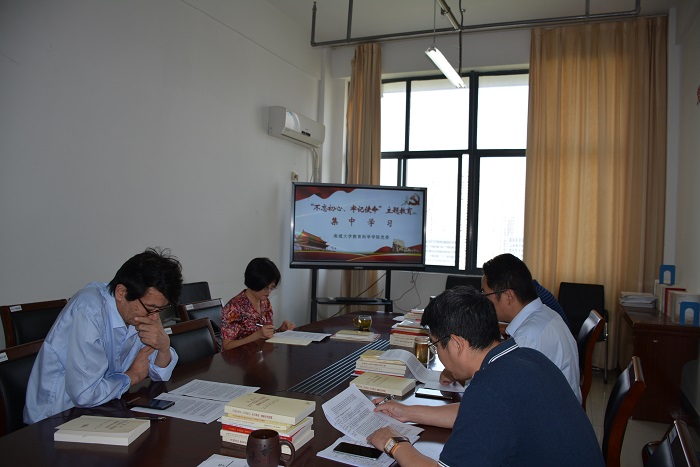 9月25日,校纪委书记陆国平为学院全体党员上了专题党课;9月23日至26日,理论中心组先后举行了四次主题教育集中学习研讨,围绕“严格党内组织生活,增强党性修养”、“牢记初心使命,推进自我革命”、“廉洁自律,造就高素质干部队伍”、“加强党的政治建设,严守政治纪律和政治规矩”等主题,朱丹、徐红波、沈永江、姜永杰分别领学;第五次集中学习研讨以“做党和人民满意的好老师”为主题,由陈炜领学,将于29日完成。主题教育期间,学院还组织各支部围绕《习近平新时代中国特色社会主义思想学习纲要》《习近平关于“不忘初心、牢记使命”论述摘编》两本教材开展集中学习。
