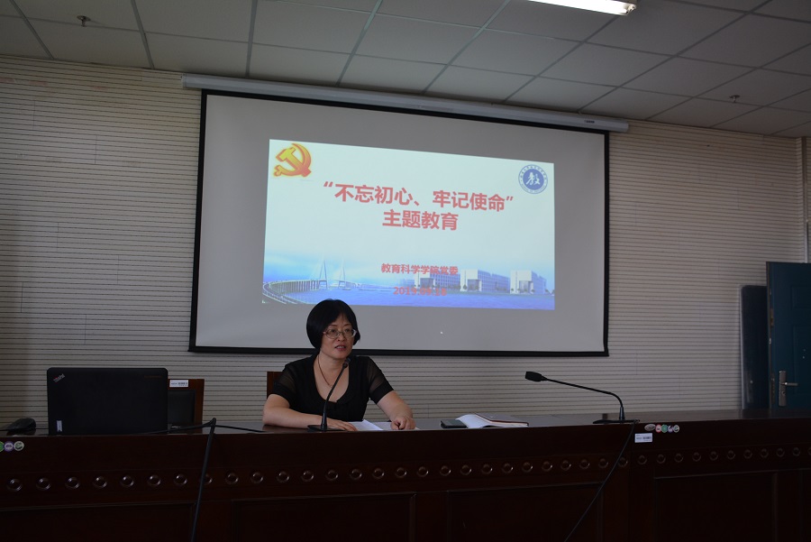 朱丹传达学校主题教育动员会精神,她要求学院师生党员以党支部为单位深入开展主题教育,结合“两学一做”学习教育常态化制度化,依托“三会一课”、主题党日等,组织党员重点学好理论,对照党章党规检视整改,以高度的政治自觉、思想自觉和行动自觉开展好这次主题教育。作为第一次主题教育活动,她带领大家学习了习近平同志《做党和人民满意的好老师》的讲话组织大家围绕习近平总书记提出的“做好老师,要有理想信念”、“做好老师,要有道德情操”“做好老师,要有扎实学识”“做好老师,要有仁爱之心”四个好老师的特质对讲话精神进行了深入的研读。朱丹要求,全体党员要认真学懂弄通习近平总书记讲话精神,将全部精力和满腔真情献给教育事业,在教书育人的工作中不断创造新业绩,力争做人民的好教师。