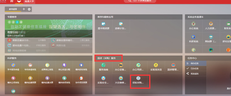 按照程序通过“智慧通大”——“国资(采购)服务”栏目下的“招标采购管理系统”进行线上申请,然后由单位负责人、项目负责人审批,审批通过后,可根据申请需要,自行购买或者国资处统一采购特别提醒:原则上不允许先购买后请示,可能会影响最后财务报销,操作步骤如下图所示: