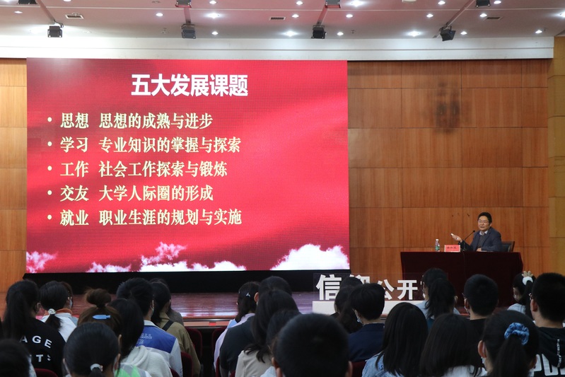 10月21日上午,我院于大学生活动中心举办了以“适应大学生活,给自己一个出彩的机会”为主题的信仰公开课。公开课由我院党委副书记兼副院长徐红波主持,我院2021级研究生及本科生参加了此次公开课。