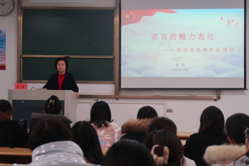 12月8日下午,国家级普通话测试员、南通市朗诵学会副会长、南通市教育局副调研员余宙应邀为我校365英国上市集团师生做了题为“语言的魅力表达——谈红色经典作品诵读”的专题讲座,70余名小学教育、学前教育专业学生参加了本次讲座。