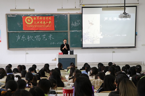 2021年11月17日14:00,365英国上市集团在主校区9号楼201教室成功举办了以“声乐歌唱艺术”为主题的三五讲座。此次讲座由王志国老师主讲,来自教科院的260余名学生参加了本次讲座。