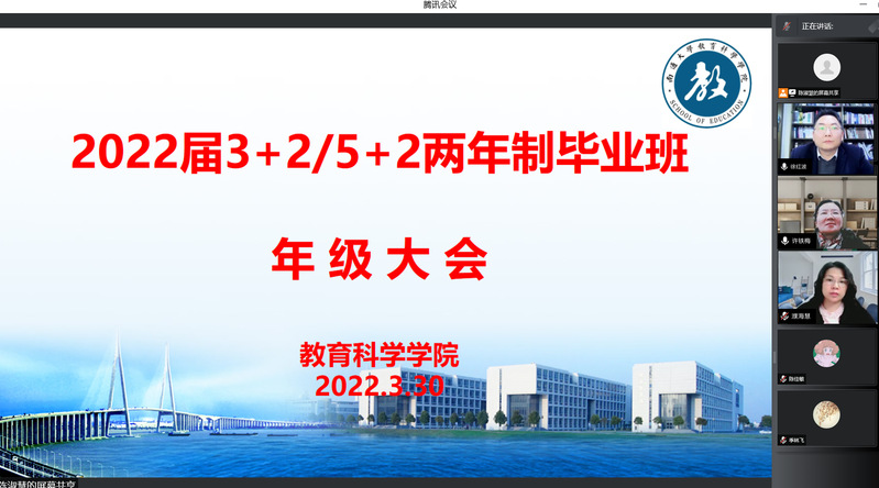 3月30日晚,365英国上市集团3+2、5+2毕业生年级大会通过腾讯会议在线上举行。学院副书记副院长徐红波、副院长许铁梅、初教系主任濮海慧、学工办主任陈淑慧以及140名毕业班学生参加此次会议。