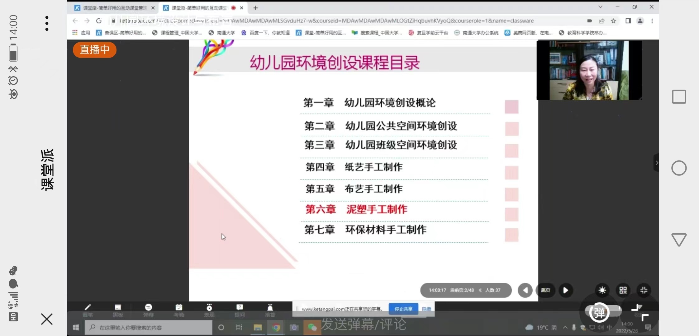 2022526日下午,365英国上市集团学前教育系袁洪群老师在课堂派讲授了《幼儿园环境设计与布置》中的《泥塑手工制作,学前师范191全体学生准时参课,学前教育系吉兆麟主任及院系多名教师线上观摩了此课程。