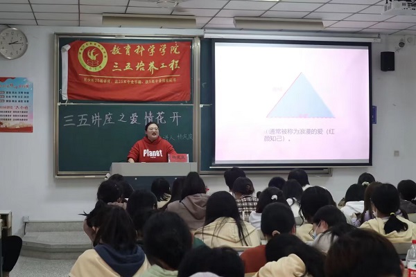 经过本次讲座的开展,同学们在幽默风趣的氛围中受益匪浅,同时也为同学们提供了宝贵的建议,帮助同学们形成的正确的爱情观。
