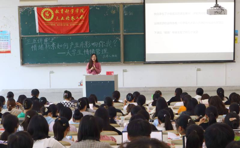11月1日下午,我院在九号楼202教室举办以“情绪勒索如何产生并影响你我?——大学生情绪管理”为主题的三五讲座。讲座由应心心理系张丽老师主讲,我院260余名同学参加。