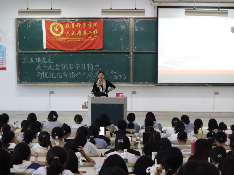 随着社会经济的发展,生活水平的提高,国家对教育的改革不断深化,大众对儿童音乐教育的重视日益增加,但仍存诸多问题。就此,10月18日,我院学前教育系潘莎莎老师开展了以“关于儿童钢琴学习特点与优化指导路径的思考”为主题的讲座。讲座在9号楼202教室举行,我院260多位学生参加。