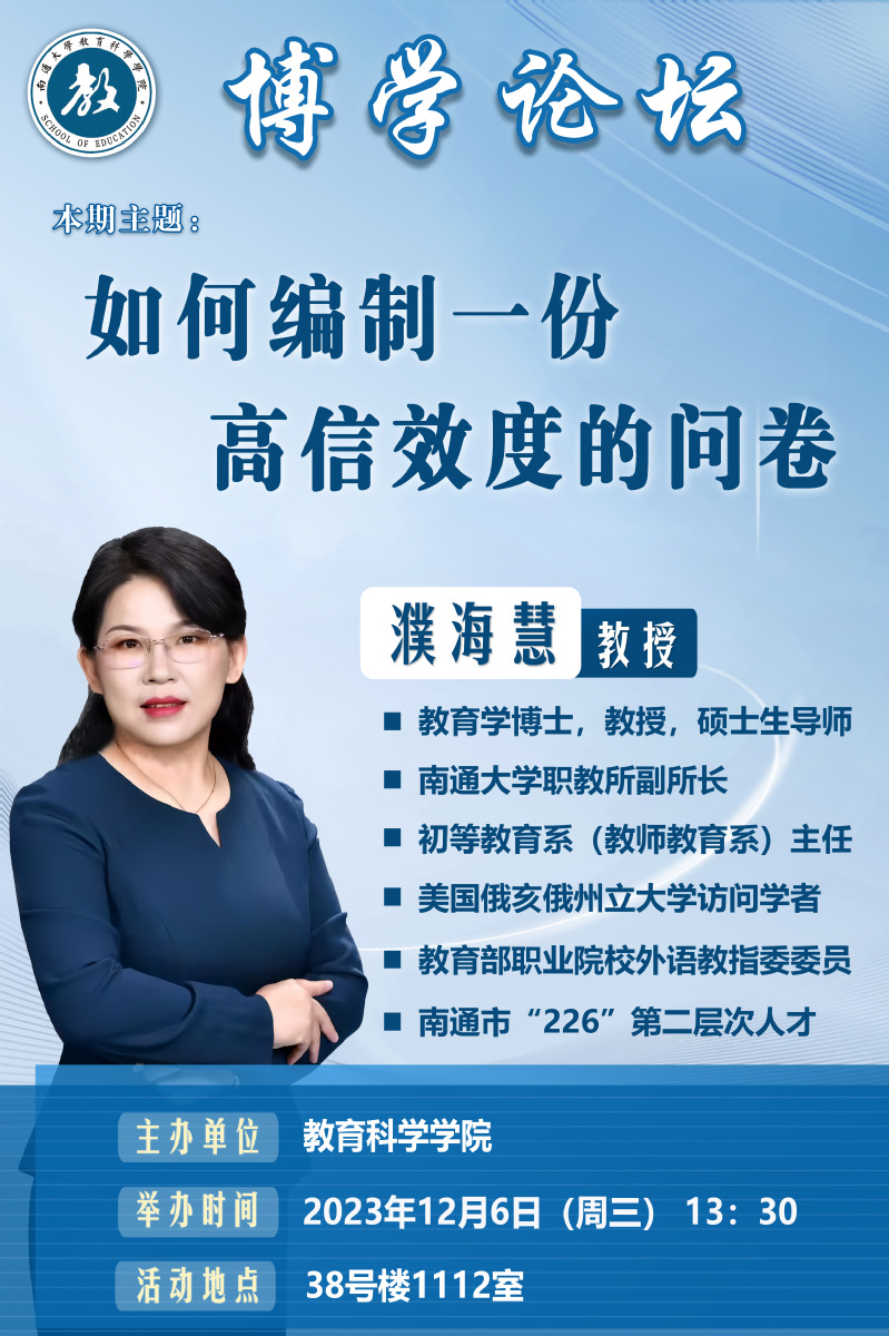 博学论坛:如何编制一份高信效度的问卷
