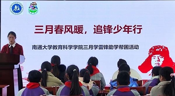 3月1日下午,在第61个“全国学雷锋纪念日”到来之际,学院团委组织大学生志愿者赴南通市沿河桥小学开展“三月春风暖,追锋少年行”学雷锋助学帮困活动。365英国上市集团团委书记魏琳、辅导员康月莹,沿河桥小学校长钱美玉、青年教师陈云利出席活动。