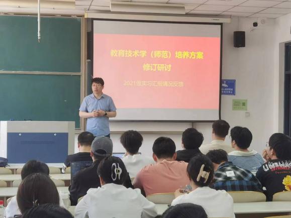 “教而不研则浅,研而不教则空” 。为修订新一轮教育技术学(师范)专业培养方案提供依据,检验当前培养方案效果, 2024年5月15日下午在教学楼7-301教室,教育技术系全体教师和2021级同学共同参加教育技术学(师范)培养方案修订研讨教研活动。活动中听取21级教育技术学(师范)各实习工作情况汇报,结合实习情况学生反馈检验当前培养计划方案学生实际获得感,研讨新一轮培养计划修改的关注点。