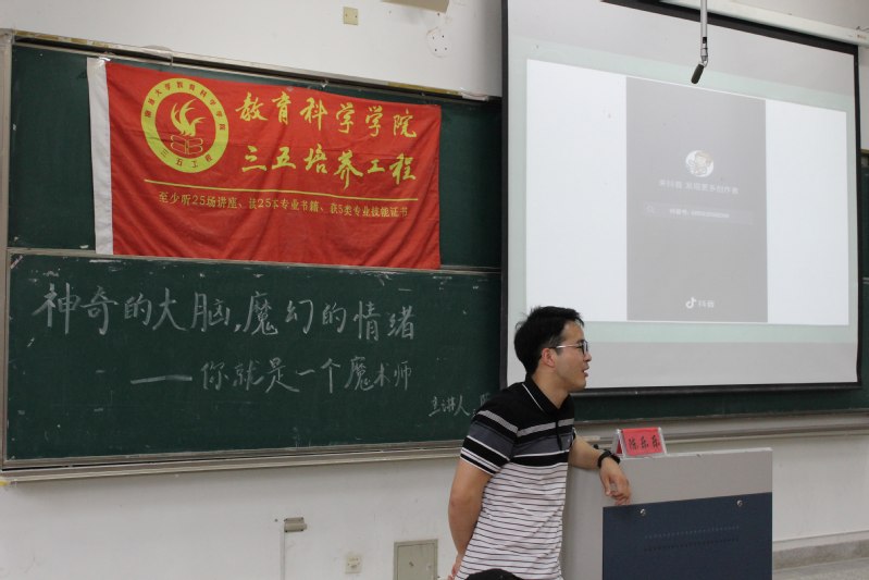 5月22日下午,我院在4号楼103教室举办以“神奇的大脑,魔幻的情绪——你就是魔术师”为主题的三五讲座,讲座由陈乐乐老师主讲,我院260余名同学参与本次讲座。