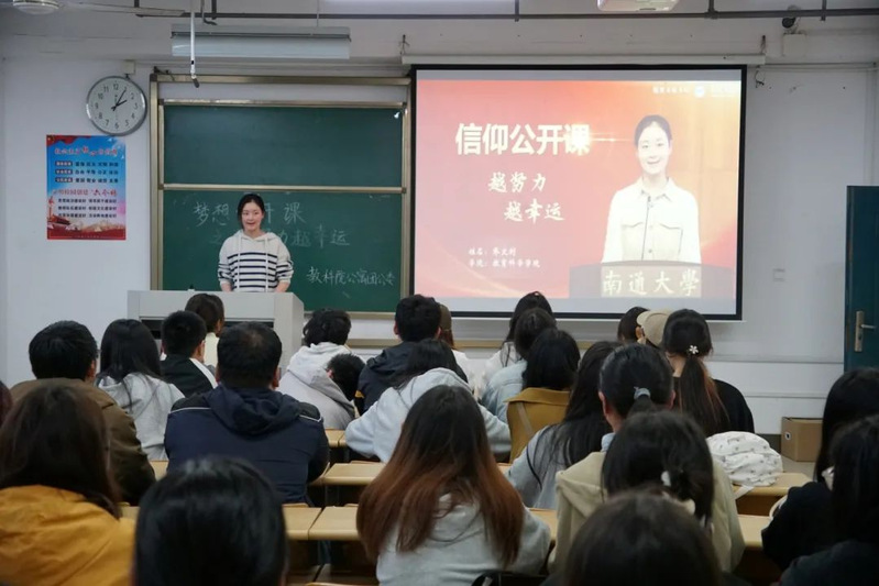 4月28日下午,我院于38号楼102教室举办了以“越努力越幸运”为主题的信仰公开课。本次信仰公开课由我院教育技术学(师范)优秀毕业生乔文剑担任主讲人,我院2022、2023级全体学生参加。