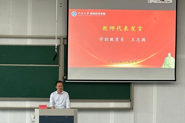教师代表、学前教育系王志国老师寄语新生,要一切从新,以当下生活为起点,告别自身缺点,不断完善自我;先成人再成才,严格要求自己;实干巧干,脚踏实地,掌握正确的方法;自信自立,勇于尝试和锻炼。