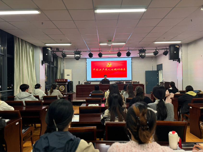 学院学工办主任、本科生第一党支部书记陈淑慧作《深学细悟党章内涵,筑牢入党思想根基》专题报告,围绕党章展开系统讲解。她先明确党章根本大法属性,梳理其18次修订脉络以凸显党与时俱进的特质;再解读党章中党的性质宗旨、党员权责、民主集中制与纪律要求等核心要义,结合身边党员榜样实例佐证;她还号召学员在理论学习中固信仰、实践锻炼中强本领、自我革新中守本色,鼓励大家将党章作为终身必修课,以实际行动争当合格党员,为民族复兴献青春力量。